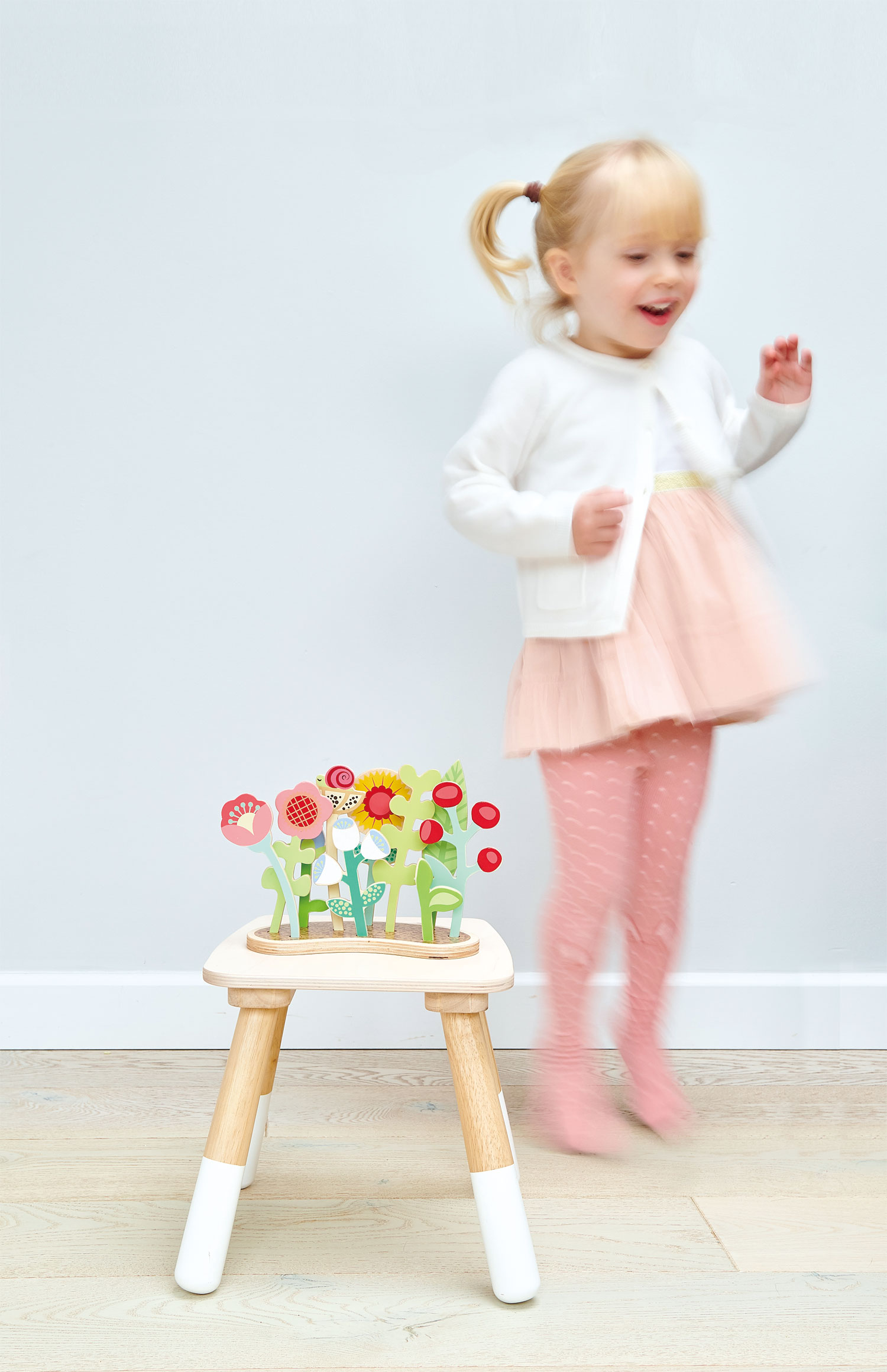 Il giardino in legno è dotato di una base con 10 fori dove alloggiano gli steli. Non dimenticate di innaffiarle per vederle crescere!